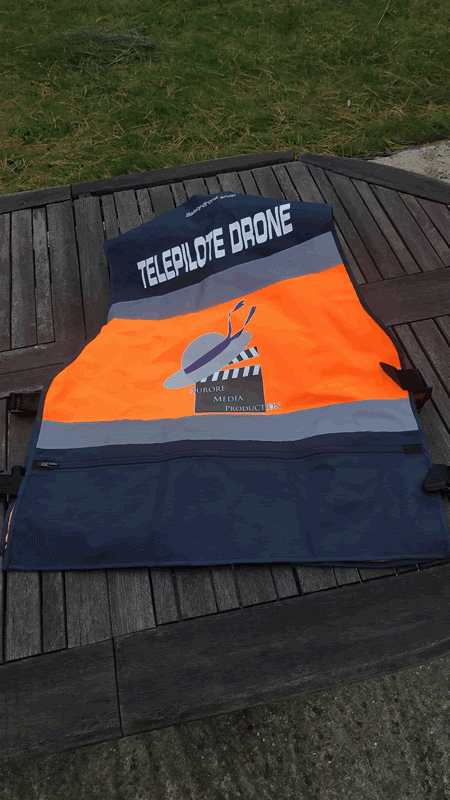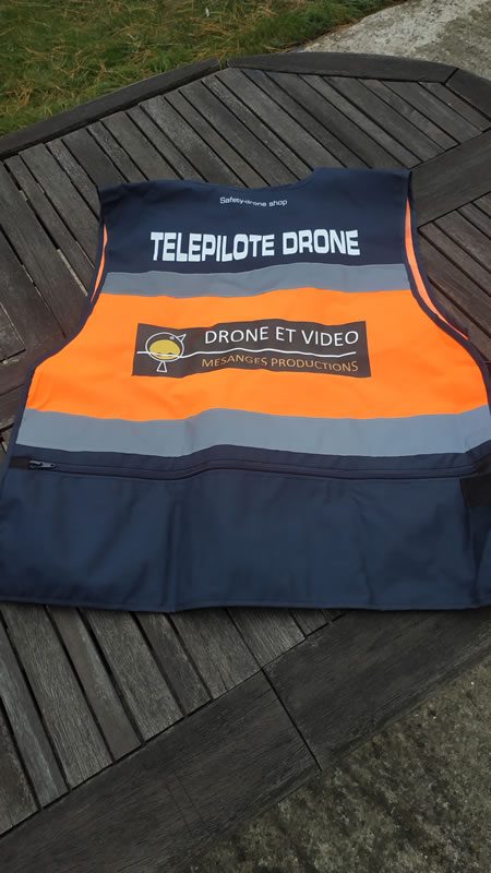 Les gilets sont vendus avec la mention “TELEPILOTE DRONE” en BLANC, au dos, sans personnalisation. Si le produit est en stock, il vous est expédié après validation de votre commande.