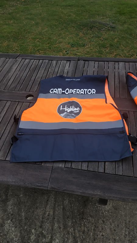 Afin d’être clairement identifié, le dos du gilet de sécurité est marqué en standard d’une ligne centrée en blanc: